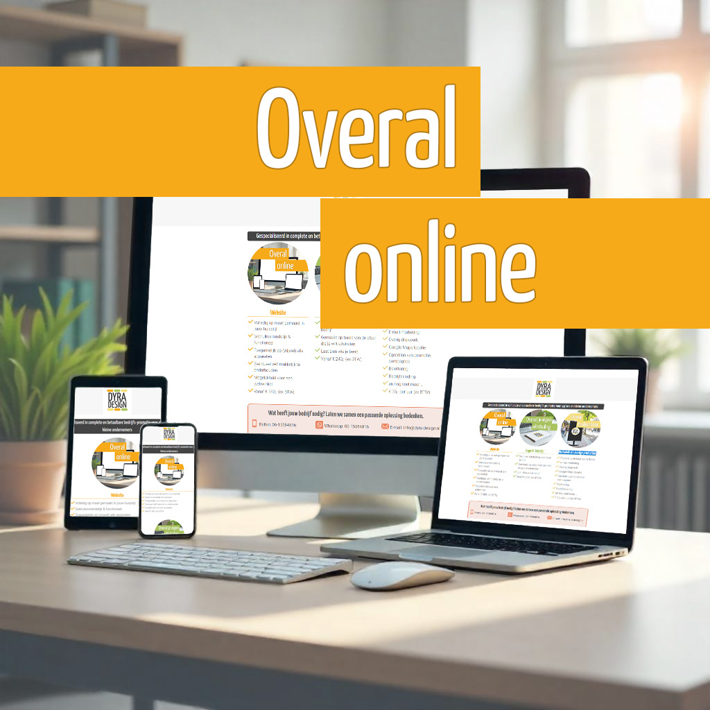 Wat heb je verder nog nodig? Wil je een mailinglist opzetten, visitekaartjes maken of een mooie poster? Staat het bedrijf al goed bij Google? Dit kan ik allemaal voor uw doen waarbij er natuurlijk voor wordt gezorgd dat alle producten door het gebruik van de huisstijl een mooi en herkenbaar geheel vormen.